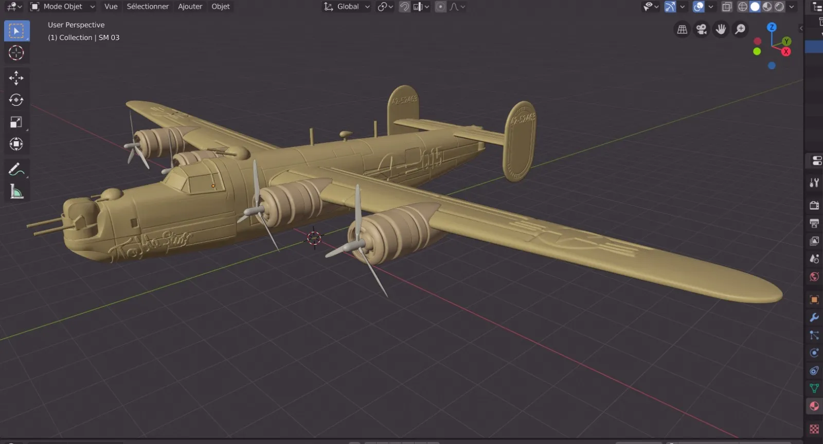 • Ingénierie : Modélisation 3D rigoureuse effectuée d’après les plans originaux du bombardier B24H.